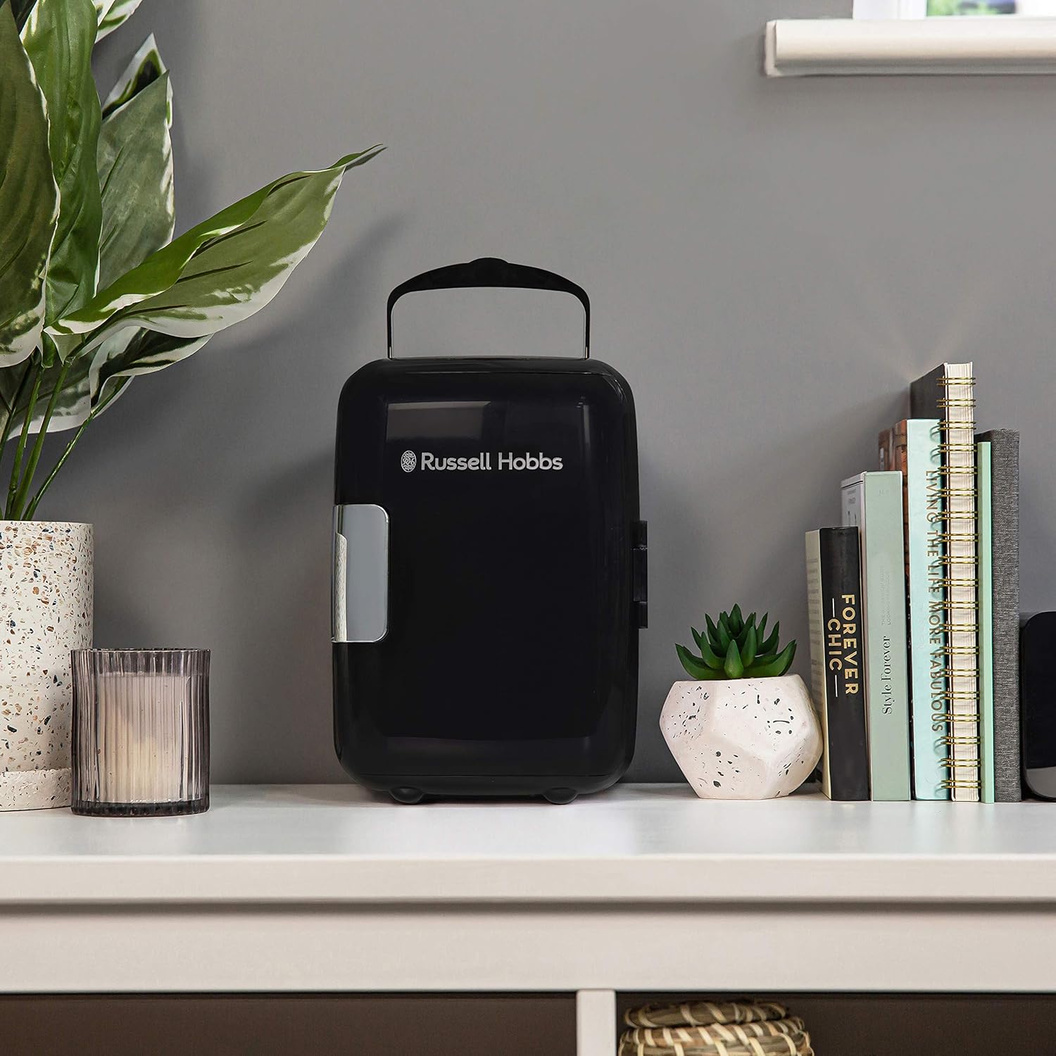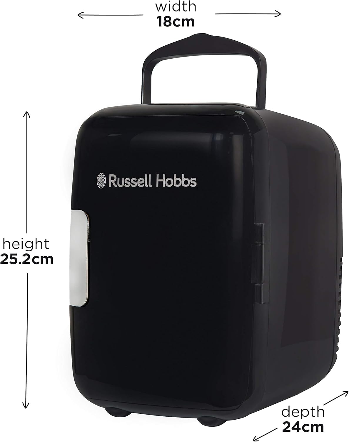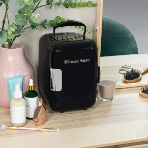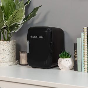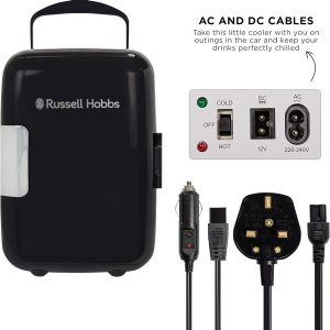 This Russell Hobbs Mini Compact Cooler is designed to fit neatly into smaller spaces. Ideal for your bedroom. home office or kitchen countertop. this appliance has 4L of space to fit up to 6 x 330ml drink cans. or a few favourite snacks within handy reach.